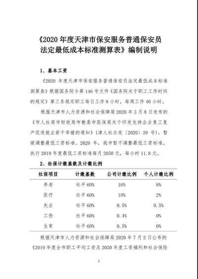 天津市保安協(xié)會發(fā)布《2020年度天津市保安服務普通保安員法定最低成本標準測算表》及編制說明。